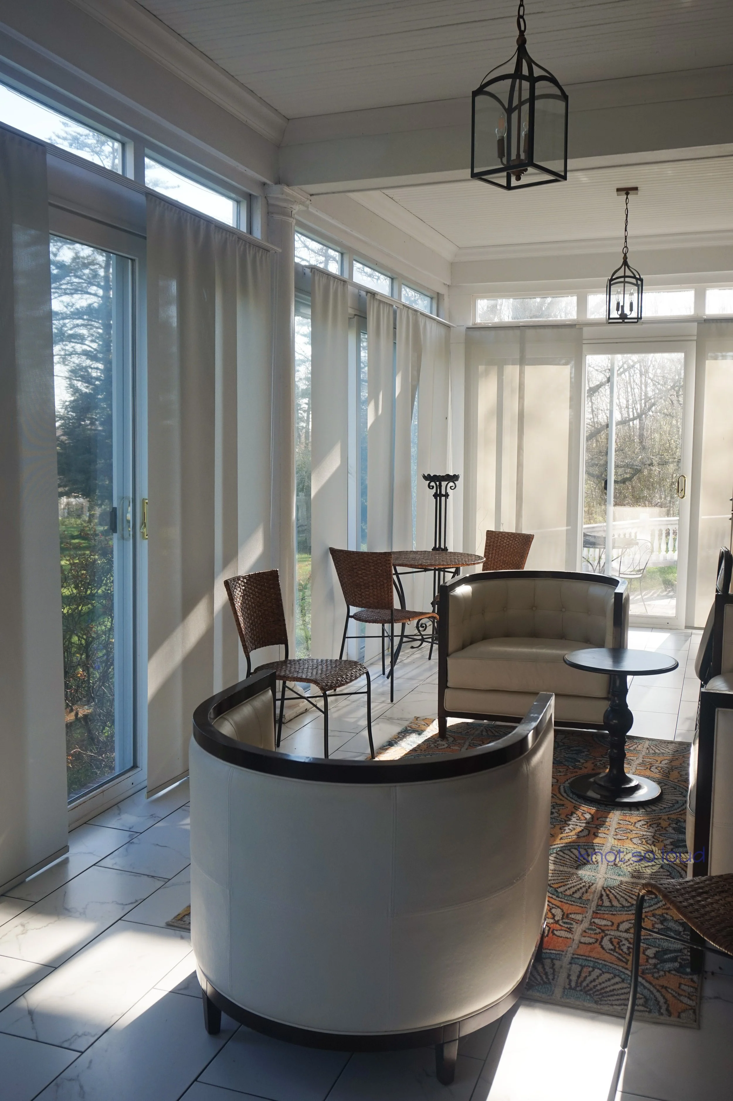 Inn at Ocean Avenue also had two large living rooms, an indoor sunroom, outdoor back patio, a reading cubby and a dining room. The inn also had 4 acres of land. Allan shared that he hosted weddings and parties. The back outdoor patio was large, and I definitely could see its potential for parties/weddings. The inn grounds also come with parking spots if you drive there.