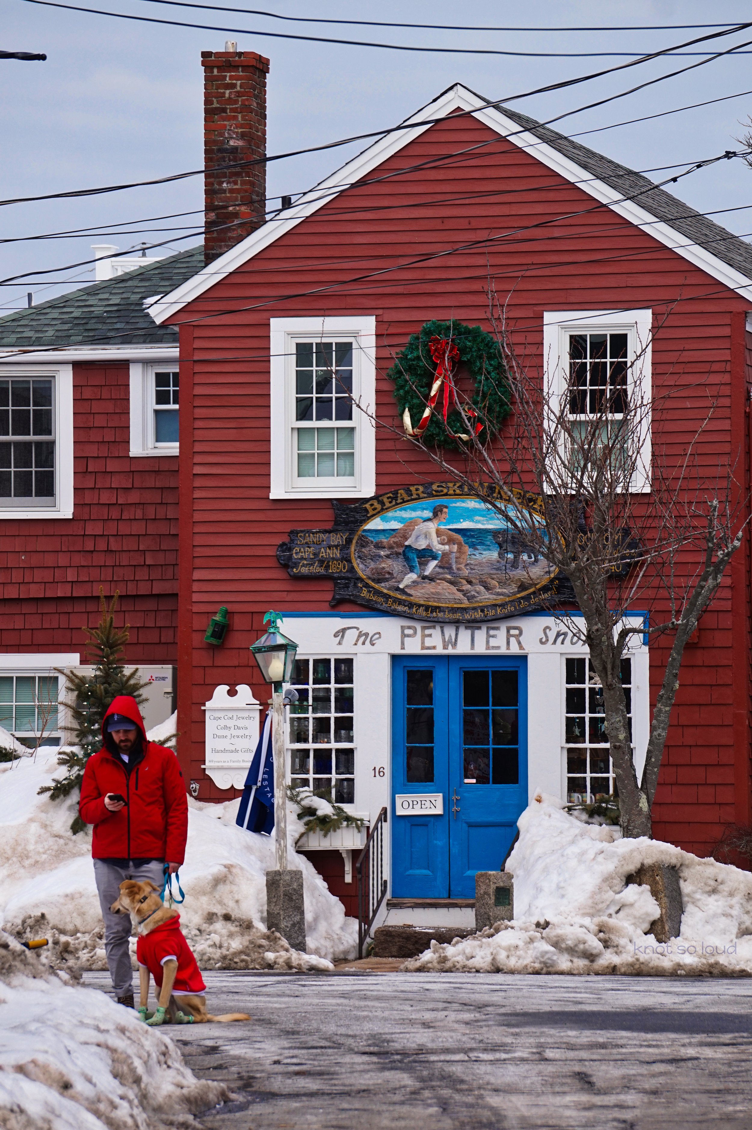 Valentine’s Day weekend in Rockport was very quiet as it was the off season. Many stores were closed but it was peaceful to stroll around the town. A lot of pups were walking around with their owners, I spotted a man and his dog both wearing red coats so I had to capture them. The adorable coastal fishing village is full of so many scenes to capture.