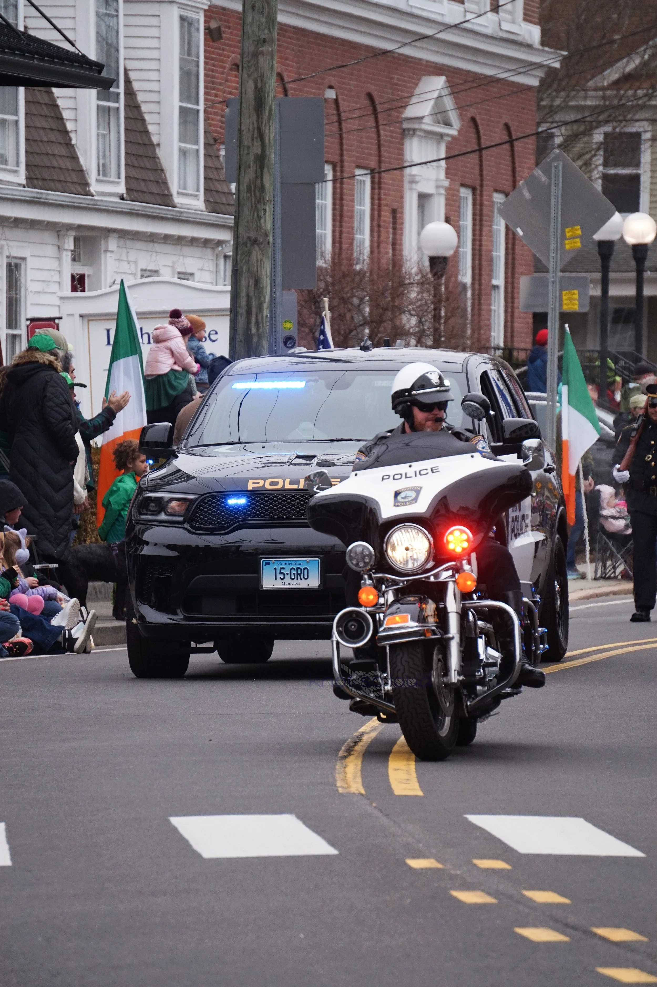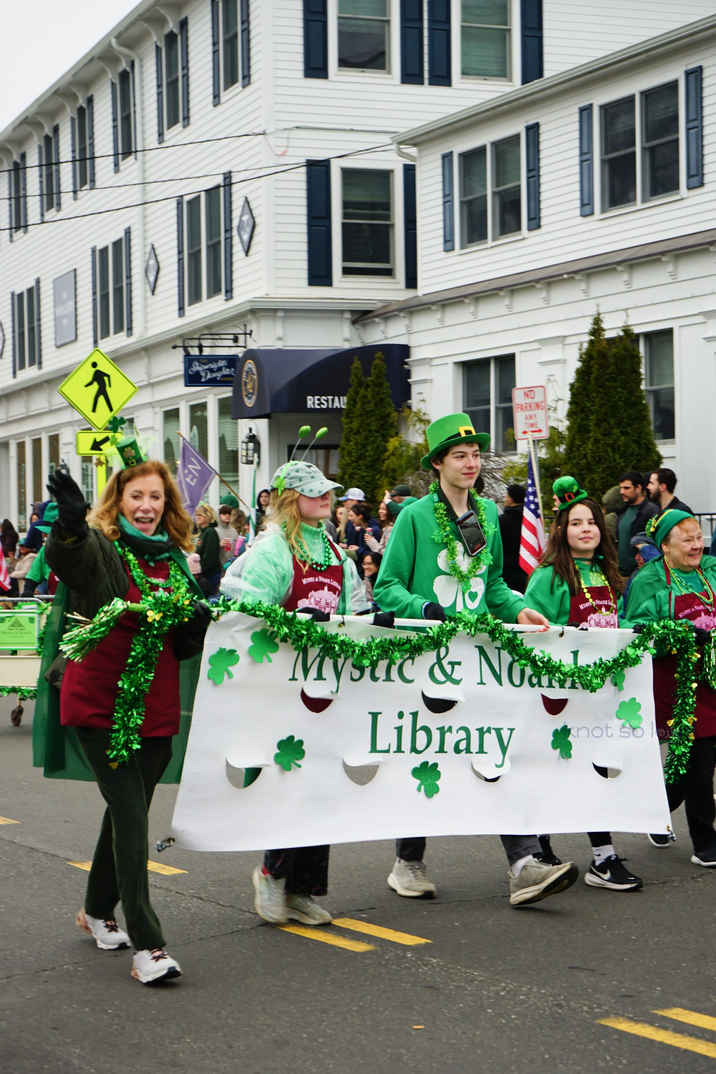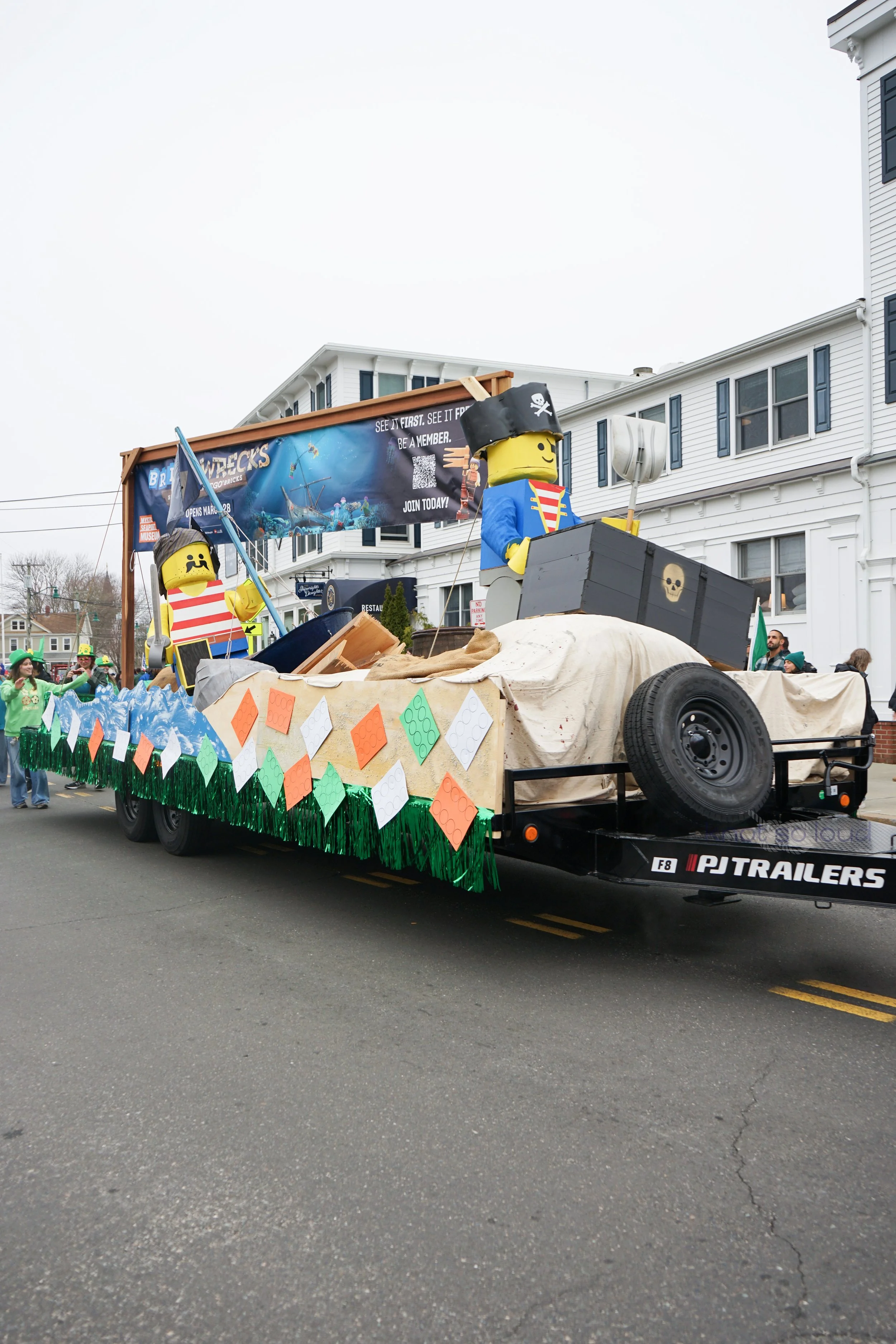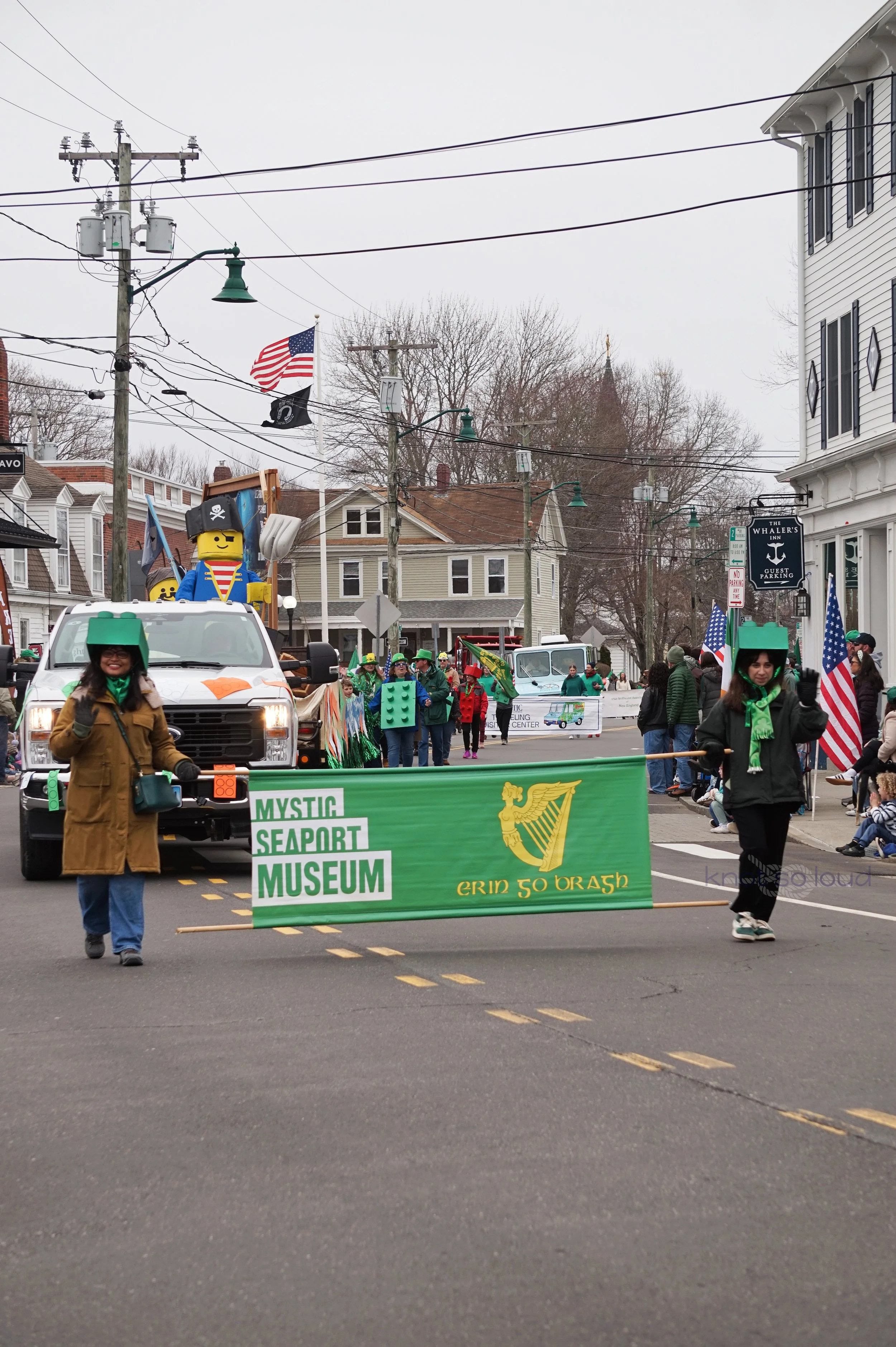 Organizations from Mystic area participated in the parade. Many thanks to the Mystic Irish Parade Board who worked hard to make this fun event happen every year for all of us. Mystic Aquarium, Mystic Noank Library, Mystic Garden Club. Mystic Seaport float promoted their upcoming Lego exhibit.