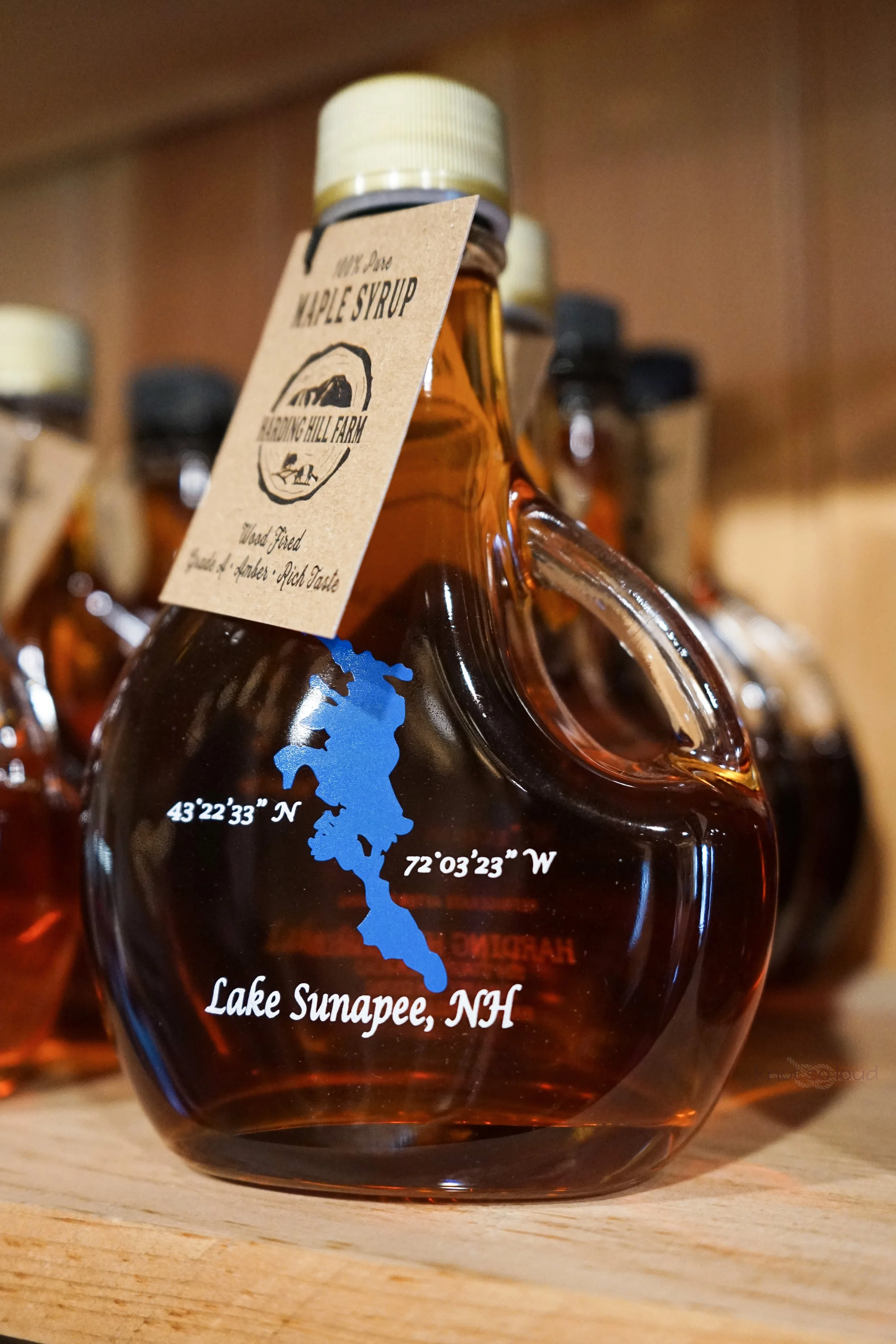 My first stop was Harding Hill Farm in Sunapee, NH — a beautiful property with a charming farm store and a glimpse into the room where the maple magic happens. They were serving up a Maple Weekend pancake breakfast, and the place was absolutely buzzing with visitors. A small but lovely touch: the bottles featured an illustration of Lake Sunapee right on the label.