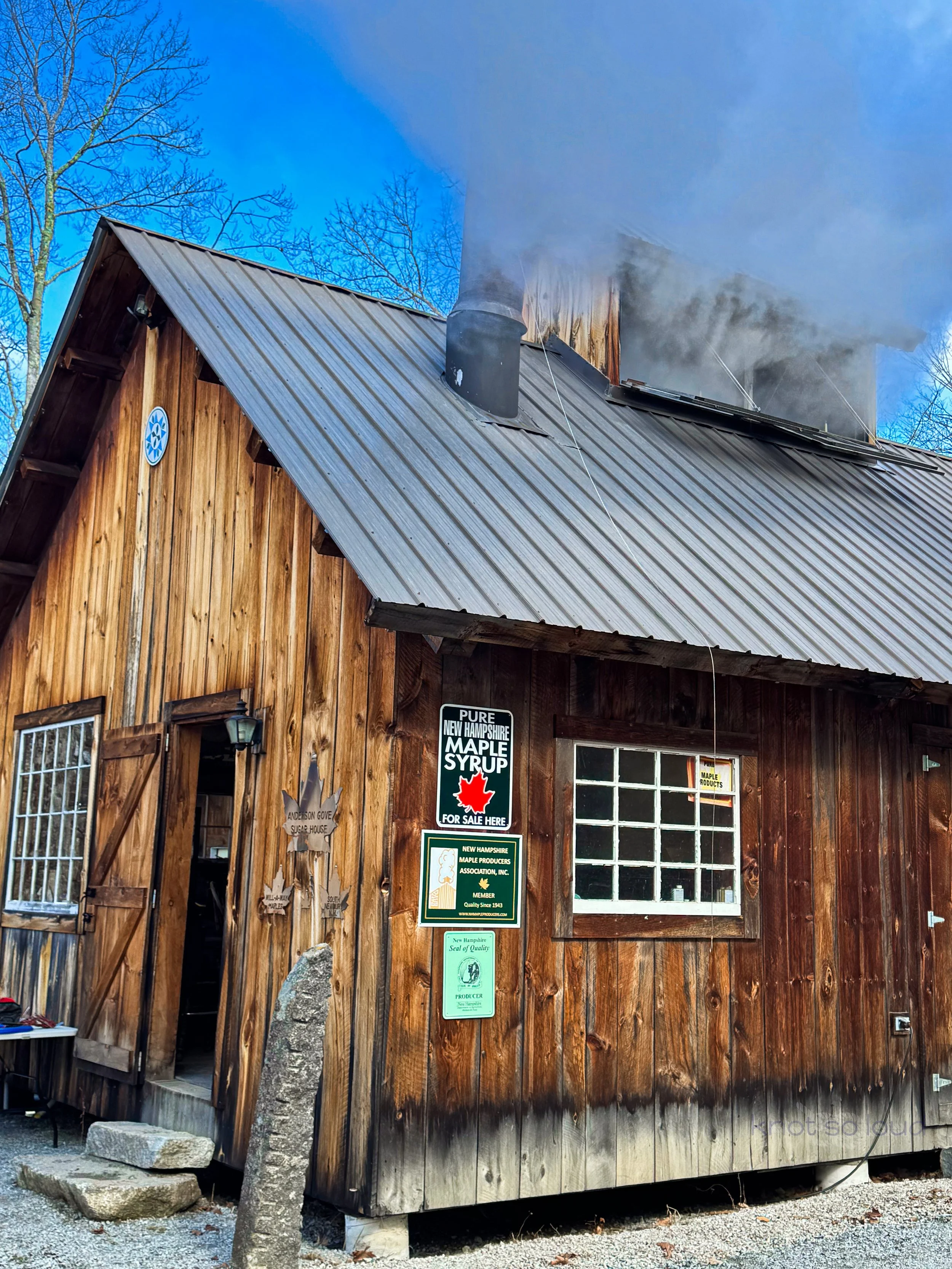 I usually stick to a planned list, but sometimes a roadside sign is all it takes to make a detour worthwhile. That was the case with Meetinghouse Maple in South Sutton, NH, which turned out to be my longest stop of the day. I lost track of time chatting with the makers and learning about the maple season in New Hampshire — they mentioned that the sap had only just begun to run. It's a fascinating contrast to Connecticut, where the season had already wrapped up entirely.