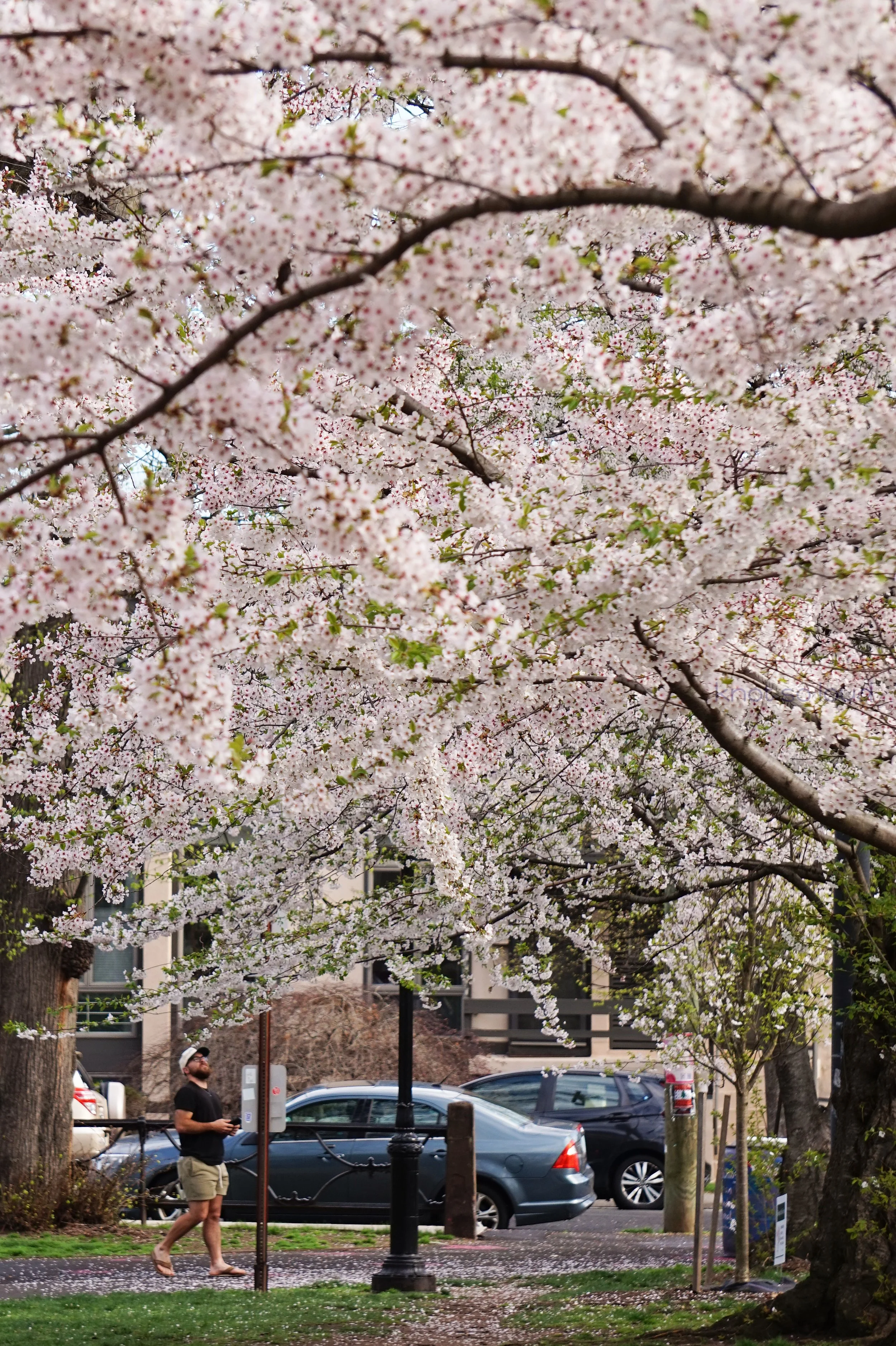 I love how I captured this man staring at the trees in awe and then eventually take his photos. All kinds of people walk through that park — families, couples, photographers, influencers, dog walkers, kids and many more. We all share that collective excitement for the cherry blossoms. There’s something beautiful about that!